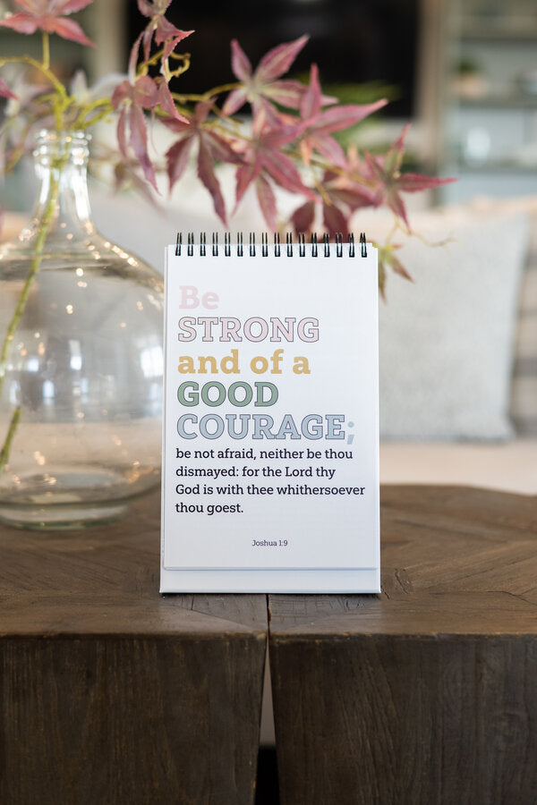 This standing flipbook is easy to keep visible in the home—place it on your kitchen table, nightstand, or entry shelf for daily inspiration.
